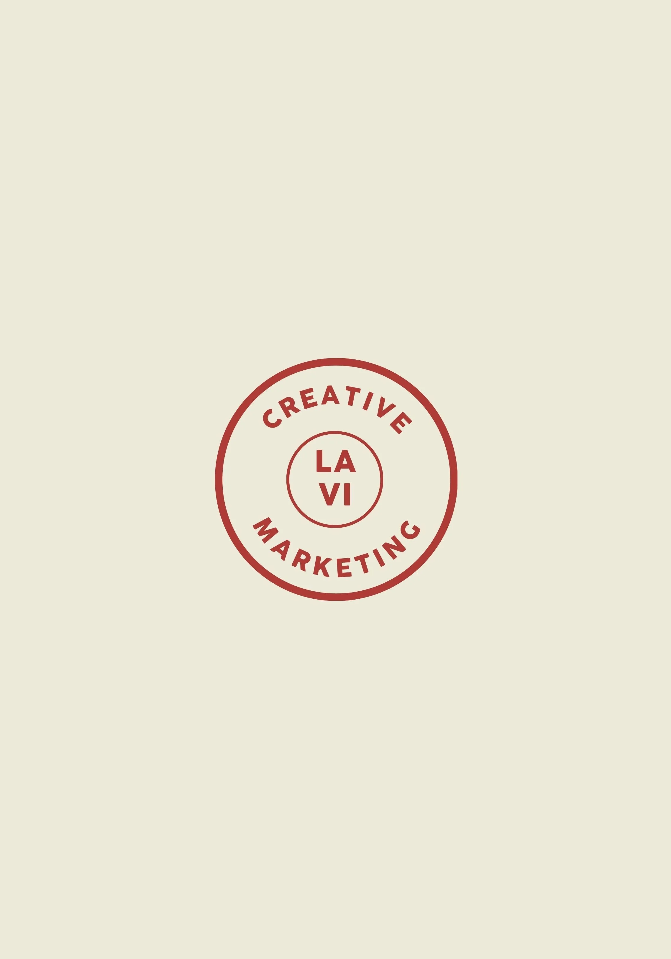 Logo with words 'Creative Marketing' and 'LA VI' in red on a cream background.